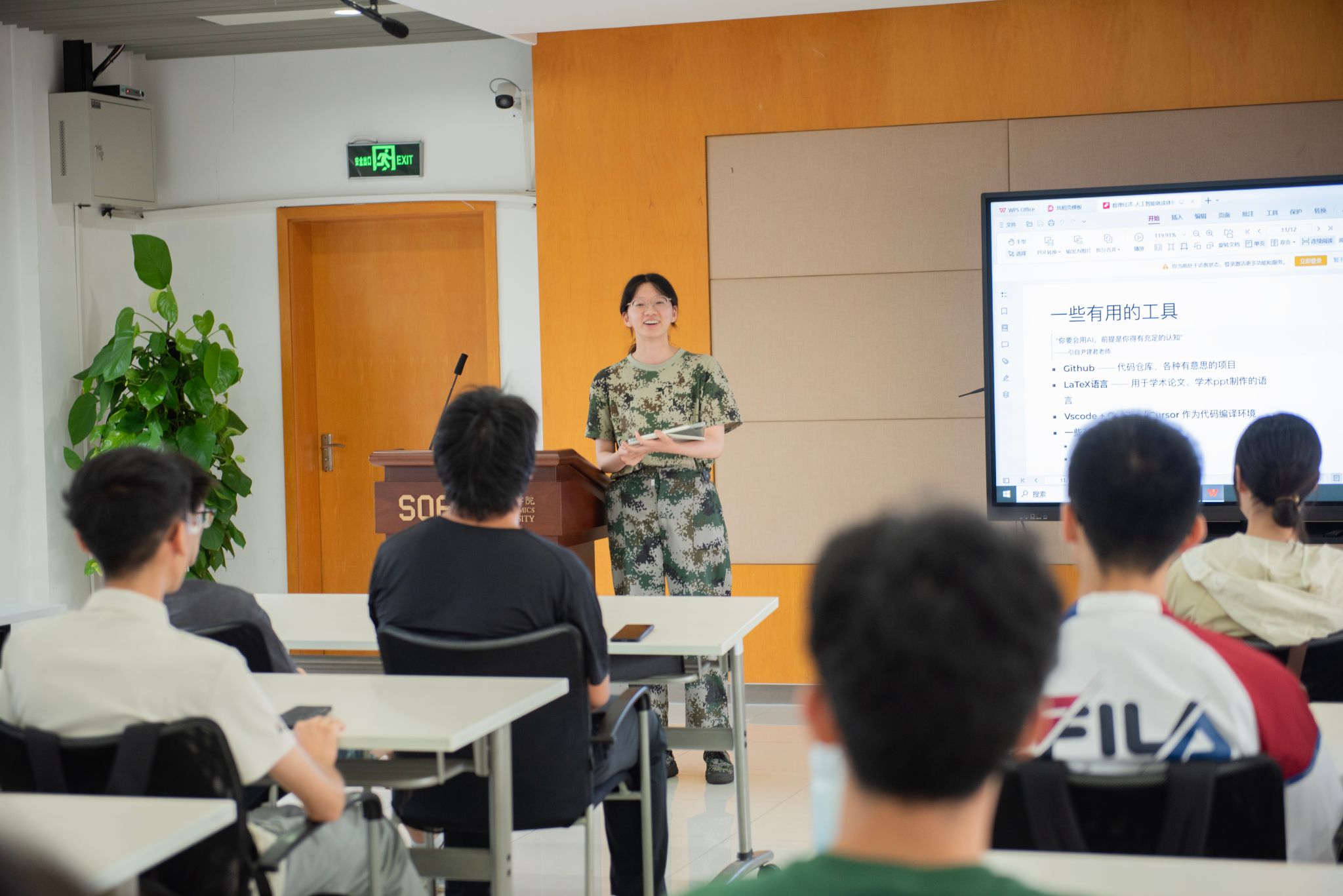 2023级数理经济班的大三学长陆昊则从“学术研究是什么”、“如何接触学术研究” 以及“如何平衡多项发展”等多个角度,向同学们深入剖析了应当如何抉择是否要走上学术研究的道路,以及学术研究对个人成长和对社会贡献的作用和意义,为同学们大学生涯的理性规划和路径选择提供了宝贵指引。