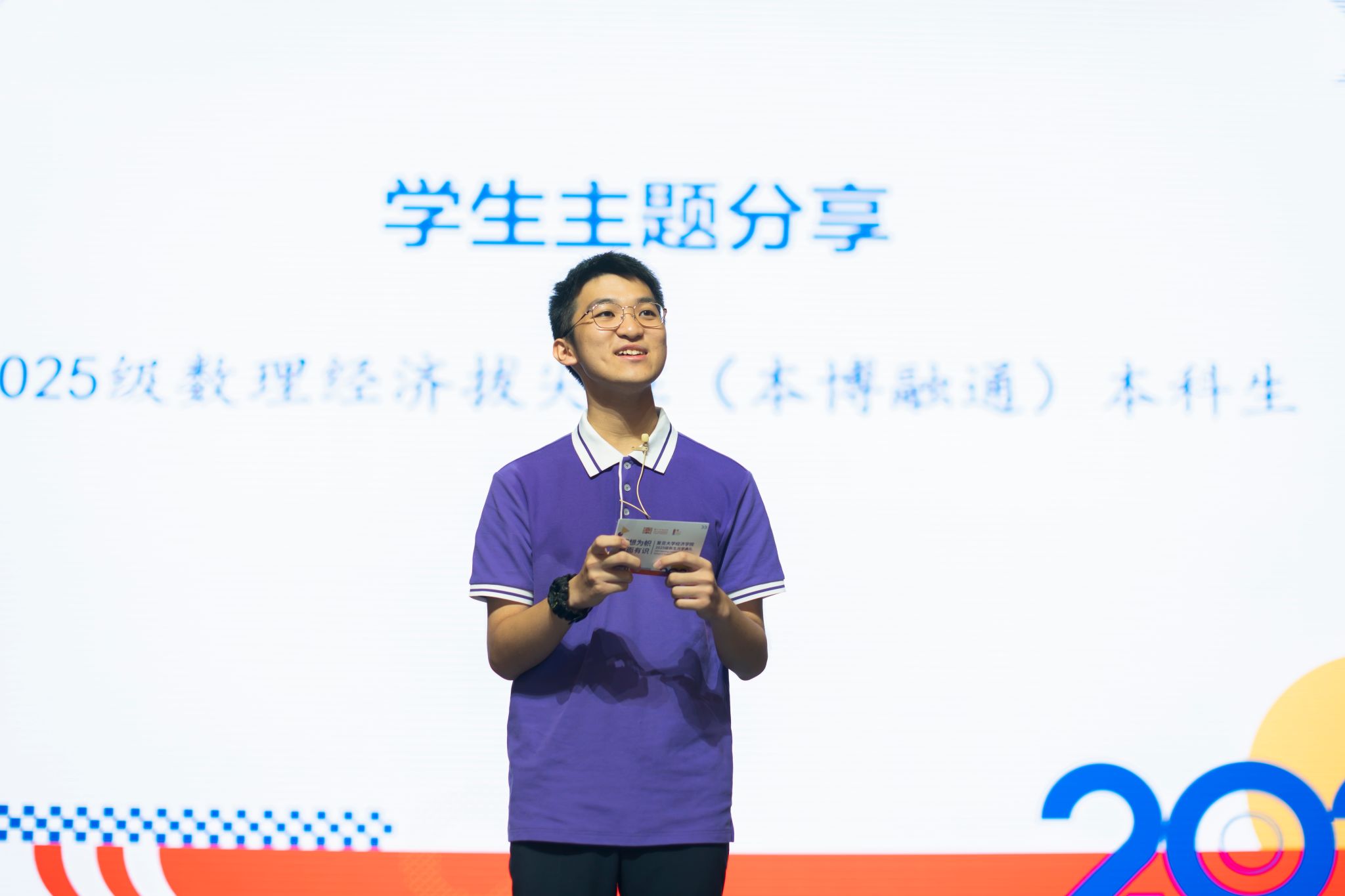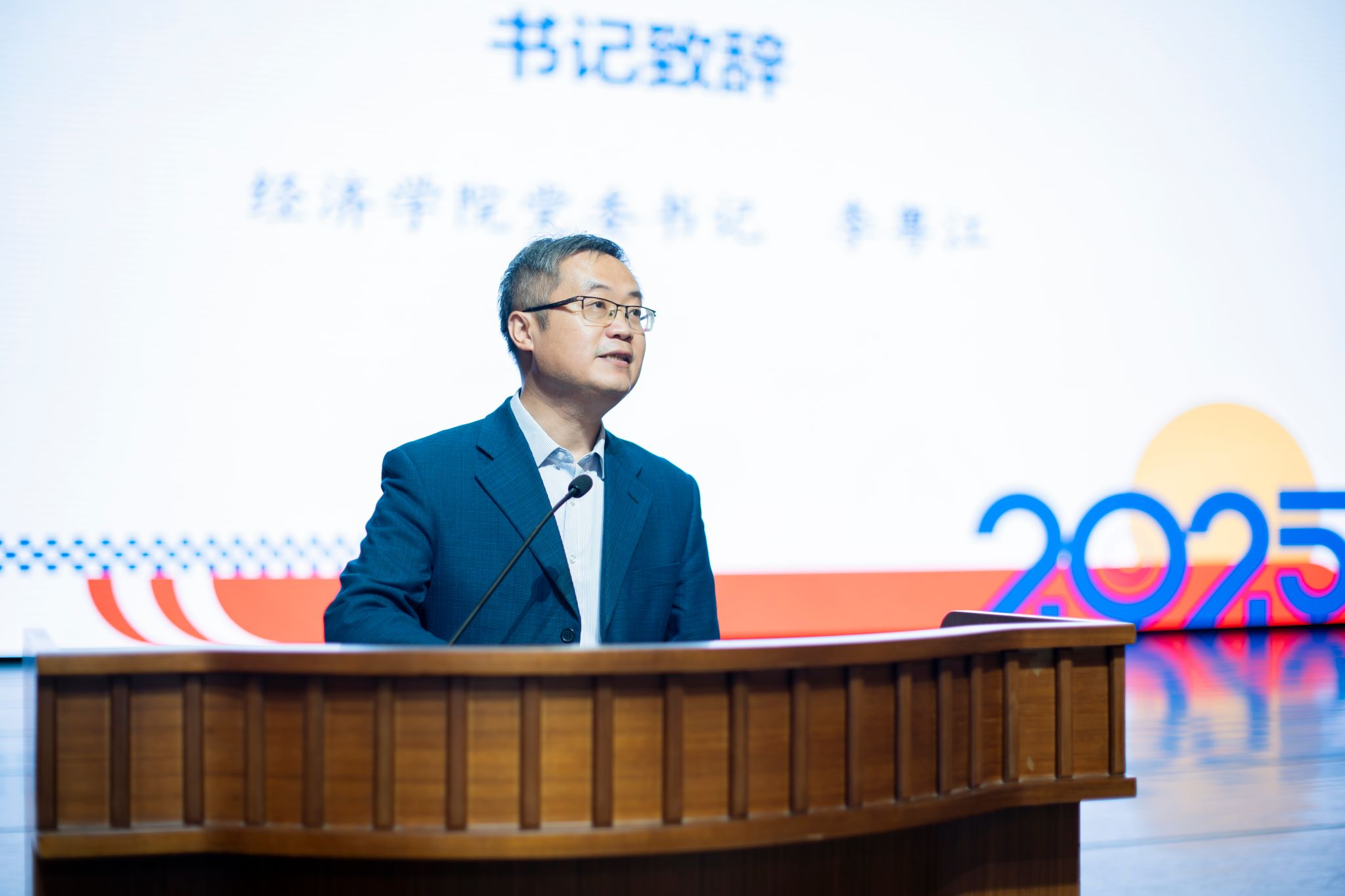 世界经济研究所副教授胡博老师作为教师代表发言。胡老师以“经济学的力量”为主题,向同学们阐述了经济学在AI时代的持久价值。他指出,经济学为我们提供了理解世界的“坐标系”,核心是“选择”“均衡”“制度”与“激励”。他希望同学们在学习中掌握严谨的逻辑、审慎的实证精神和开阔的交叉创新的视野,获得穿越经济周期的迷雾、洞见世界本质的能力,在任何领域都能绽放精彩的人生。