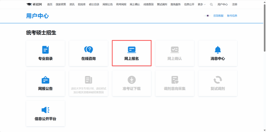 已注册考生:直接输入账号密码登录,点击六合彩心水“统考报名”按钮,选择“统考硕士招生”→“网上报名”,阅读《报名须知》后点击“确认”,进入下一步。