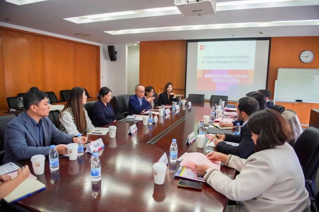 714会议室举行。双方回顾了两个院校已有的项目和对外合作基础,并一致认为,在当今全球经济发展与数字化转型的背景下,加强中哈两国顶尖商学院之间的合作具有重要的战略意义。