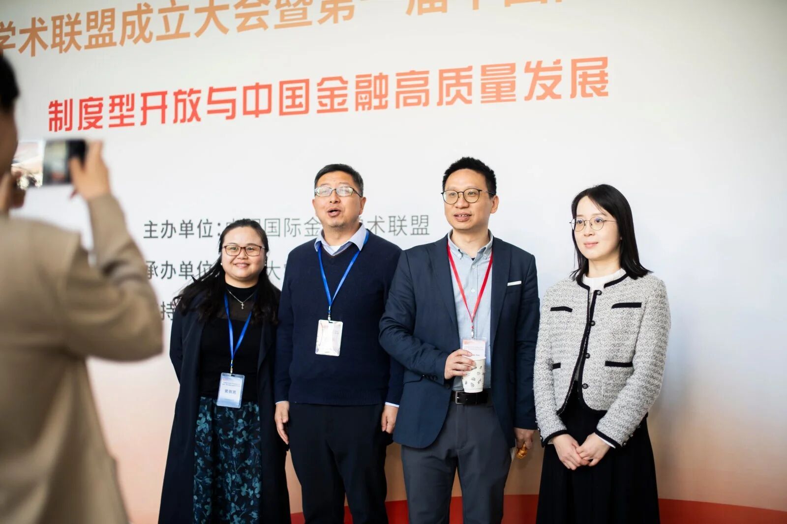 揭牌仪式环节由南开大学金融学院院长范小云、上海财经大学副校长刘莉亚、天津财经大学校长孟昊、山东财经大学副校长彭红枫、湖南大学原副校长杨胜刚、厦门大学特聘教授朱孟楠作为揭牌嘉宾,与22位联盟理事单位代表及支持期刊代表共同见证这一国际金融学术领域的重要时刻。