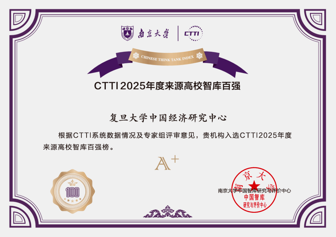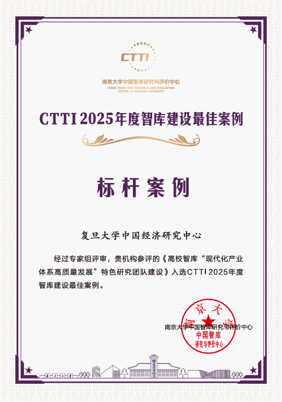 中国经济研究中心参评的《高校智库“现代化产业体系高质量发展”特色研究团队建设》被评为CTTI 2025年度智库建设标杆案例。