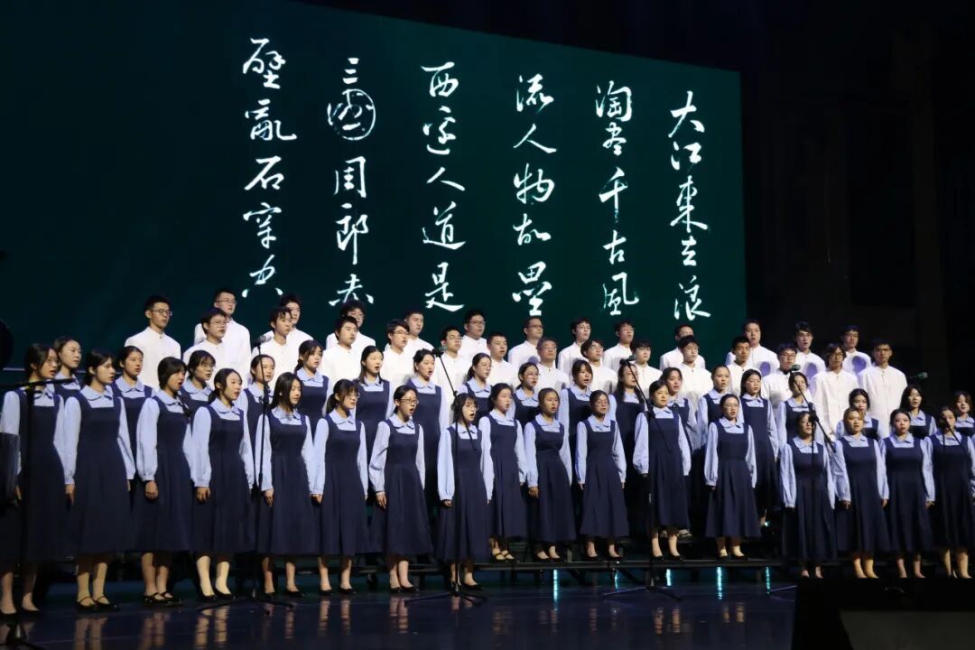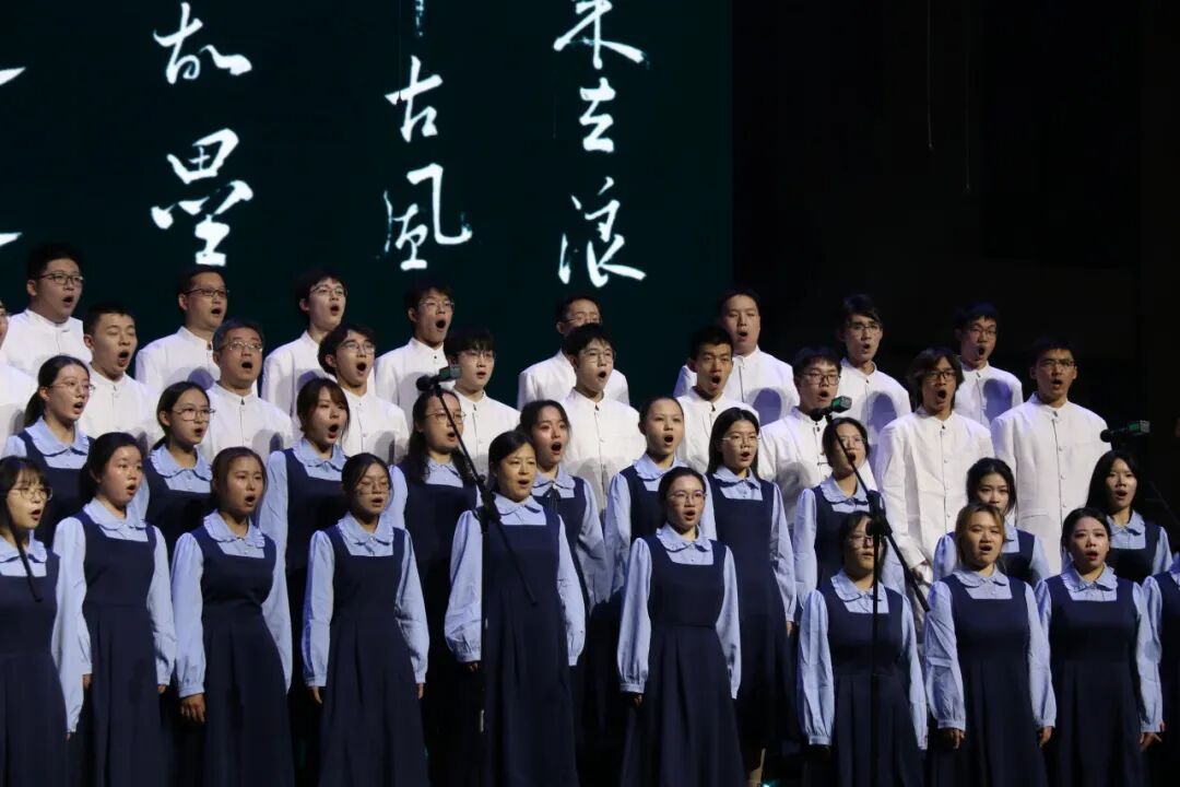 决赛的现场,队员们立于静谧的黑暗之中。随着第一声海浪轻柔拍岸,灯光缓缓铺满舞台。我们以一曲《大海啊故乡》深情启幕,歌声仿佛母亲的呢喃与故乡的呼唤,流淌过每个听众的心田。