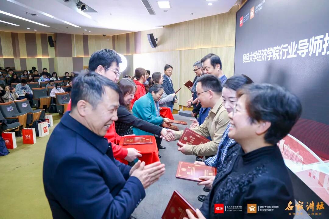 行业导师代表上台做了精彩发言。导师们分享了自己的专业知识和行业经历,与同学们进行了极具启发性的交流。多位导师回顾自身经历,强调自驱力与视野开拓是在时代中立足的关键,复旦等高校的平台优势在于提供试错空间与国际视野,助力学子明确方向、积蓄智慧。导师们指出,当前金融、评估、保险等专业服务领域正经历深刻变革,AI融合与技术进步成为核心驱动力;技术进步将倒逼从业者从“知识记忆”转向培养“学习能力”,通过终身学习适应迭代,避免被时代淘汰。关于人才素养,导师们普遍认为复合型人才是行业刚需,需兼具跨学科知识、跨界能力与开放心态,主动拥抱变革。此外,体质健康与情绪管理在导师们的分享过程中被反复强调,高强度工作需以身体为本钱,可持续的奋斗方能支撑长期的价值创造。