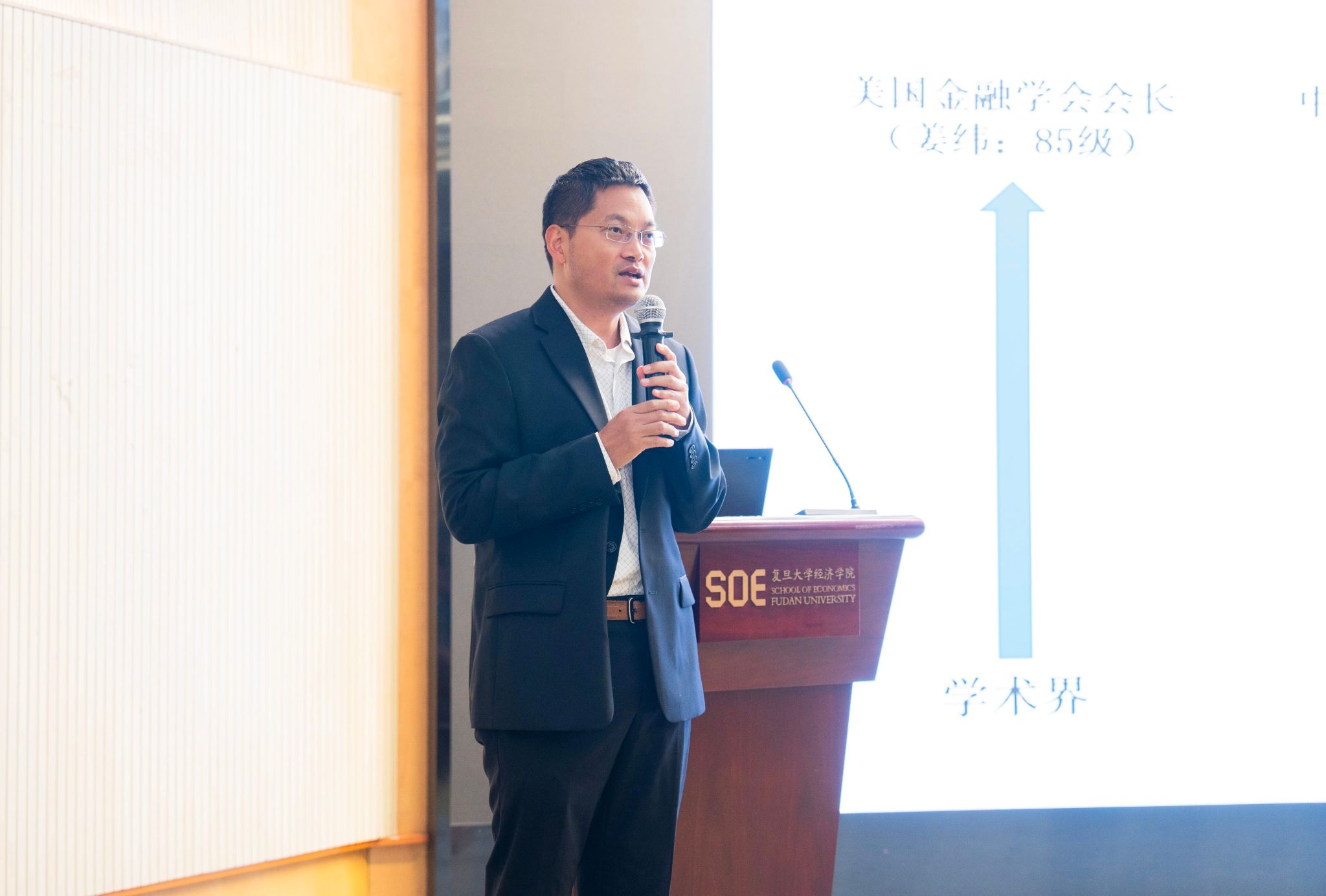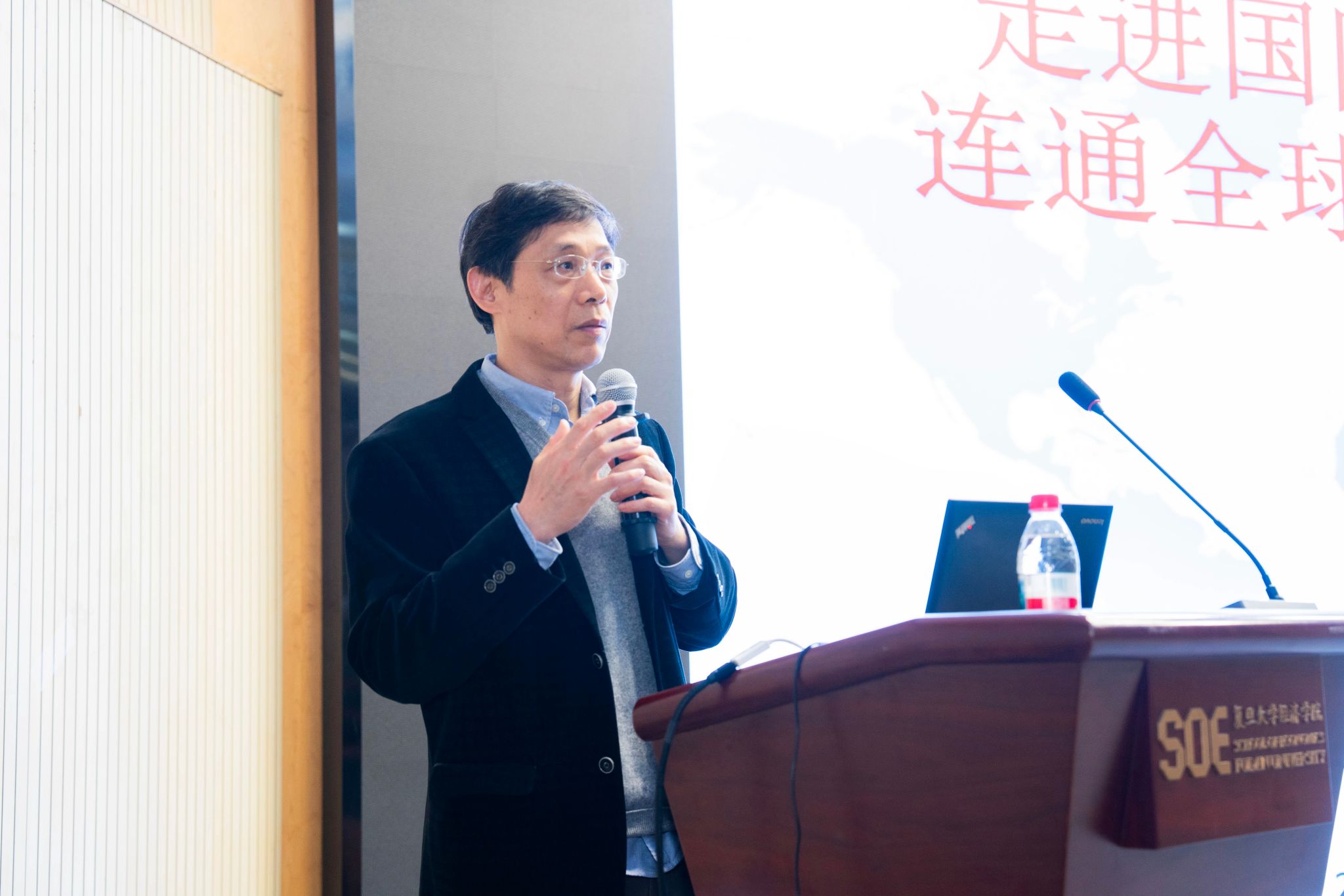 推介会伊始,世界经济系系主任程大中教授以近期备受关注的中东地缘冲突事件及其对全球经济的影响为例,生动阐释了学习国际经济学的现实意义。他指出,从霍尔木兹海峡的石油运输风险到全球产业链供应链安全、再到国际金融市场的动荡,国际经济学为我们提供了观察和理解世界经济相关问题的理论知识框架与分析方法。他详细介绍了国际经济与贸易(国际经济学)专业的三大领域(国际贸易、国际投资与国际金融)、三个结合(思想研讨、基础知识与工具技术)以及四个重点(微观基础、宏观政策、理论方法与实践运用),并特别强调了双学位项目(“国际经济与贸易专业”经济学学士与“数据科学与大数据技术专业”理学学士)的加持。程老师以世界经济系的系友们在国内外学术界、政界与实业界的杰出成就为参照系,生动展示了该专业本科毕业生的发展高度,并热情邀请同学们“走进国际经济学,澄观全球风云,成就美好人生”。
