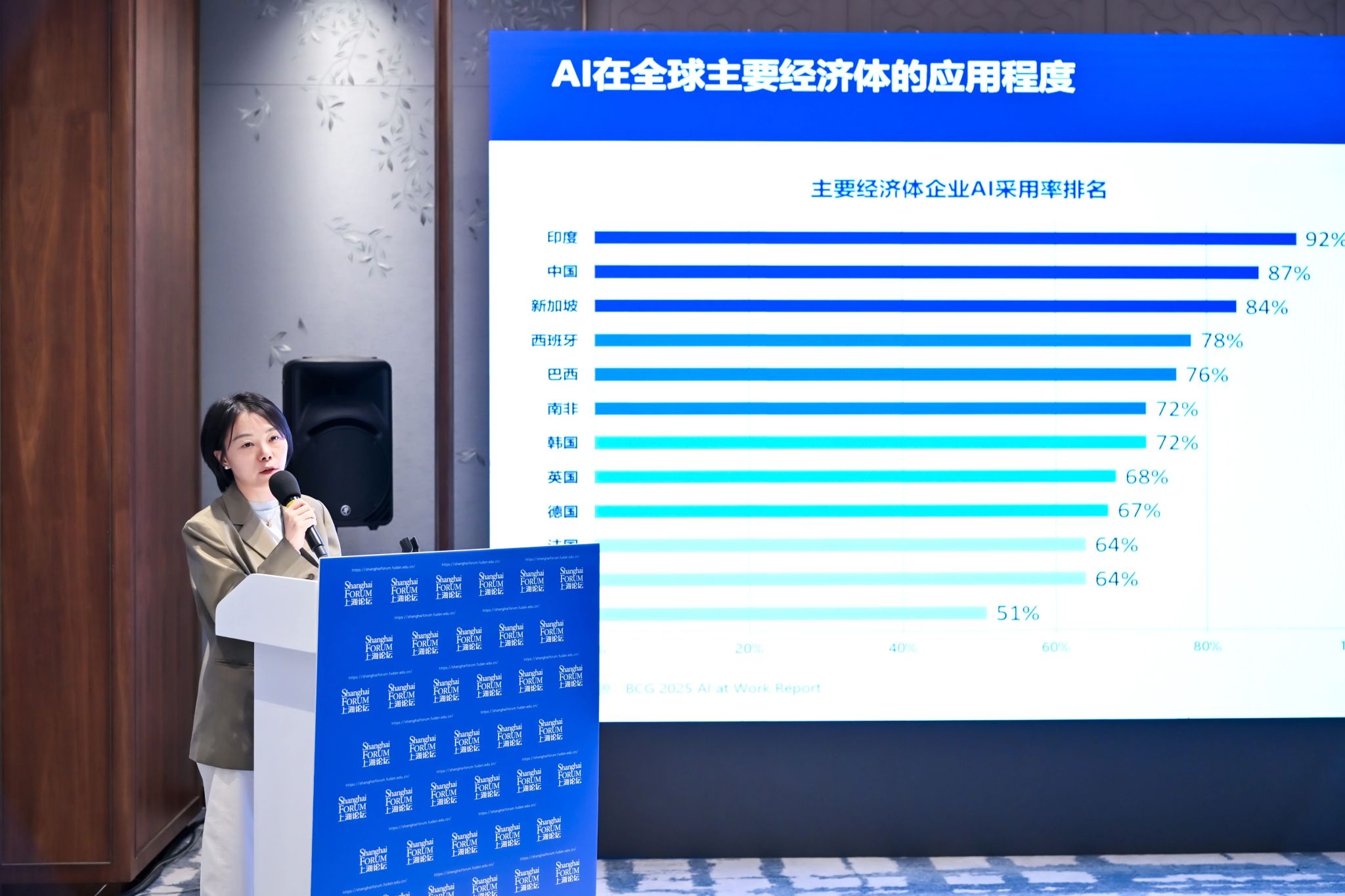 副教授胡博担任主持人。分论坛聚焦人工智能(AI)快速发展背景下劳动力市场所面临的深刻变革。来自中国、美国、韩国、新加坡等一流高校与研究机构的重量级学者,从经济学、管理学、政治经济学等多学科视角出发,结合大数据与行业实证分析,围绕AI对就业结构、技能需求、收入分配及经济增长的影响展开深入讨论。