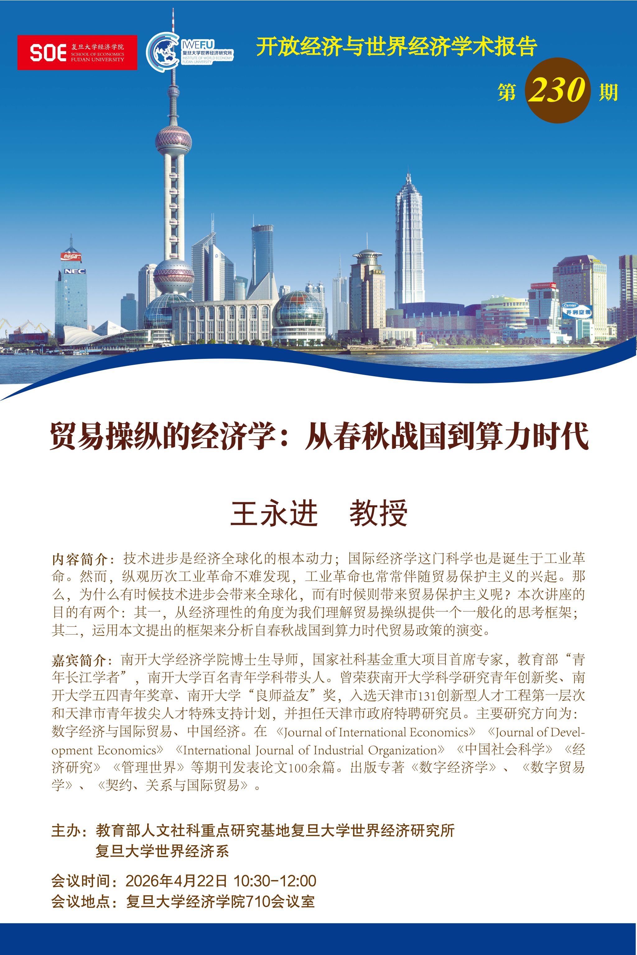 六合彩心水 世界经济研究所开放经济与世界经济学术报告第230期:贸易操纵的经济学:从春秋战国到算力时代