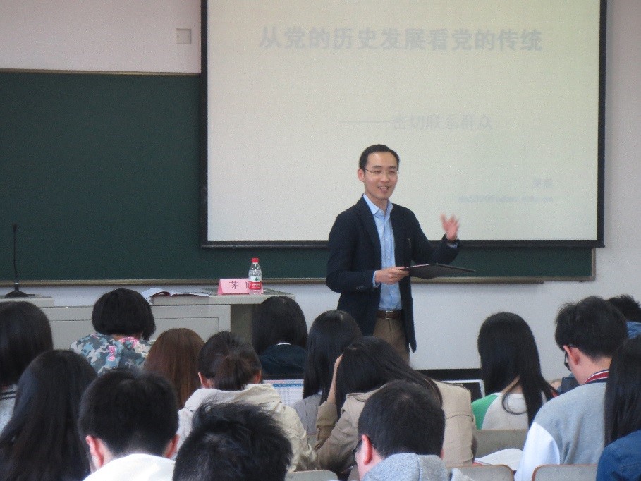 茅盾老师最后为学员们带来关于党的基本理论的报告,从党的历史与优良传统谈起,详细阐释我党的群众路线、历届领导人的群众观点,又结合“两学一做”的学习教育活动与学员们一起探讨我党密切联系群众的优良传统,学员们积极提问,也得到了茅盾老师客观翔实的回答。