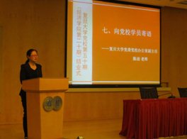 最后,校党委党校办公室副主任陈洁老师为本次积极分子培训班结业学员寄语。陈老师勉励学员要以刻苦认真的态度,踏实的学风,把在本次培训班的课程内容中学到的理论知识融入到日常学习生活中,引导学员不断前进,不断端正入党动机,也希望每位学员能够进一步加强学习党的理论,不断成长。