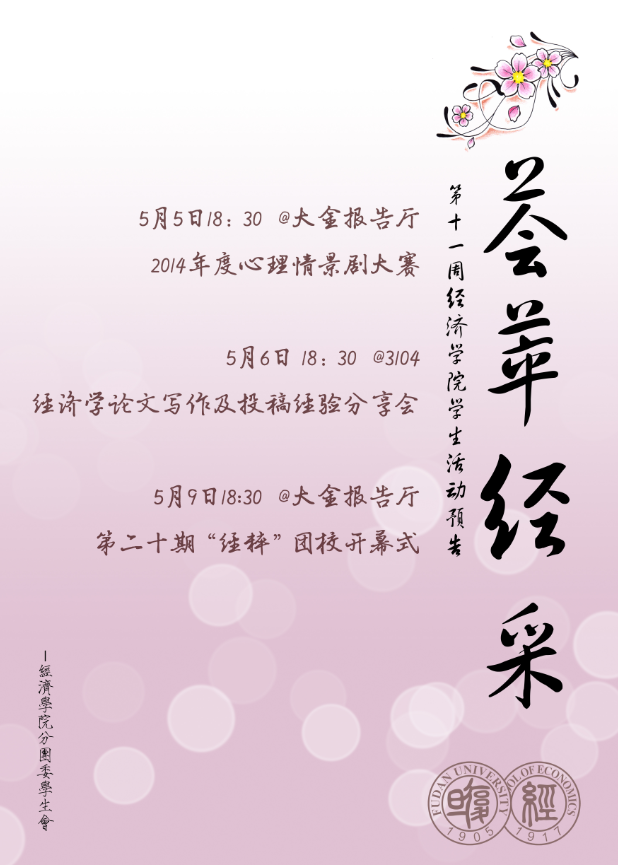 上一篇:【文艺部】经院2014年度心理情景剧大赛成功举办