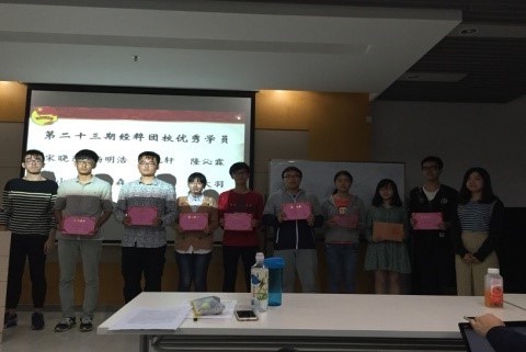 接下来由分团委学生会主席王充为学员们颁发结业证书。从学员们坚定、自信而又充满力量的眼神中,可以看出经过近一个月的历练,每一位学员都有了巨大的进步,在由青涩到成熟的成长之路上又向前迈进了一大步,也更加强烈地意识到了自己作为一名共青团员所肩负的巨大责任。来自经院三班的符学文同学与我们进行了课程经验分享,尤其是JA课程带给他的巨大启发。