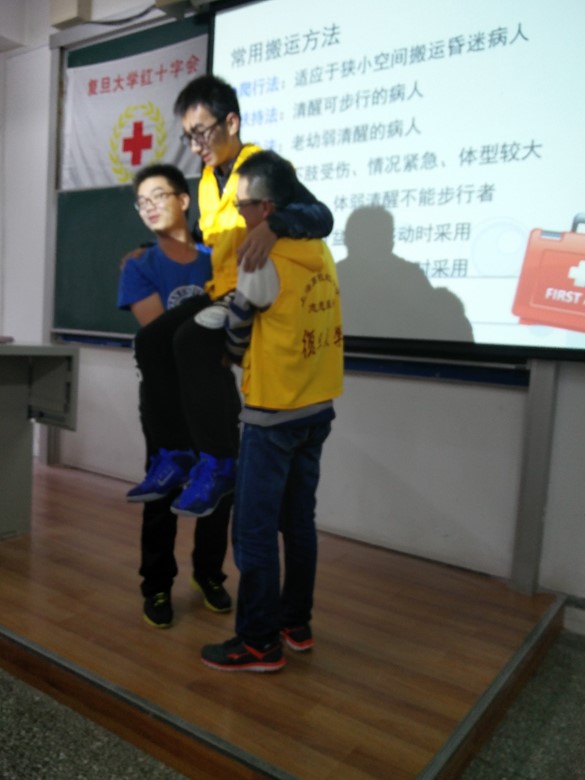 就在上个月举行的上海国际马拉松上,我校附属中山医院的医师在比赛途中及时对昏迷晕倒的参跑者进行心肺复苏等急救措施,成功拯救救了该名跑者的生命,得到了全社会的赞誉。我们每一个人在感到欣慰之余,也更加认识到,拥有正确成熟的急救技能对于社会上每一个人来说都是一种必要,对于社会来说更是一份安全的保障。为了提高班级同学急救能力,培养同学正确实施急救的意识。我院15级2班特地请来我校红十字会队伍,对班级全体同学进行急救技能培训。
