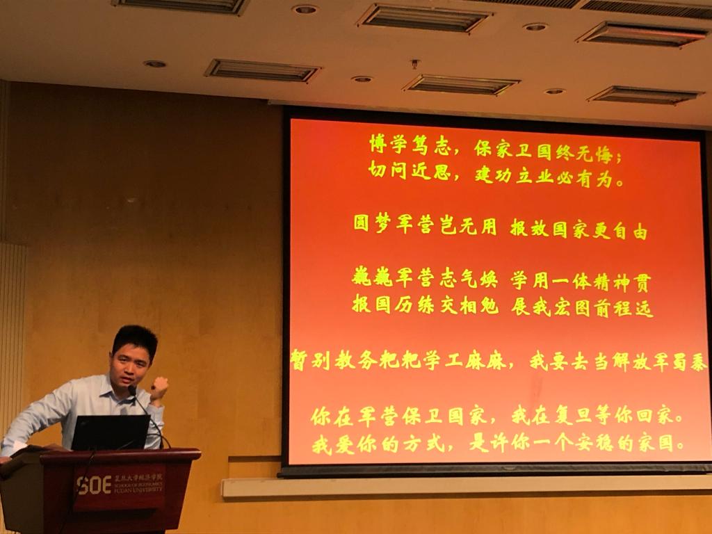 之后,范科琪老师播放了征集复旦学生建议制成的宣传标语,宣传语句温暖而贴近生活,受到师生好评。在当今长期和平的环境,大学生走入军营就是参与国防的方式,并且当代国家对大学生征兵标准,从比例和质量上的要求逐年提高,适应了军队发展信息化、现代化的需求。宣传语内容充分表达了对爱国拥军光荣传统的敬仰和传承,同时也号召广大同学踊跃应征,把个人理想抱负融入强国强军梦,在保卫国家的过程中实现自我价值。紧接着,范老师详细解读了六合彩心水