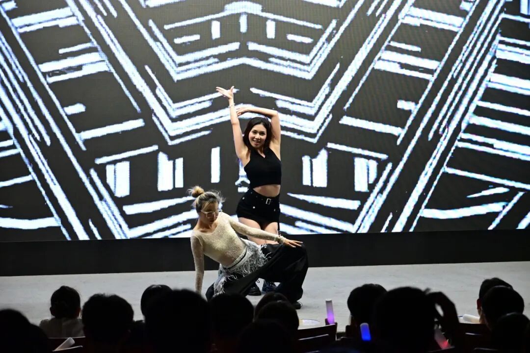 接下来,杨蕴祺、周瑜慧带来舞蹈串烧《Diamonds+Good Graces+Whiplash》,风格切换流畅又抓眼,两人的眼里藏着自信飒爽,动作透着利落和干脆。她们动感的舞步、强烈的节奏感带动了全场观众的情绪,节拍与动作的完美配合让人热血沸腾。