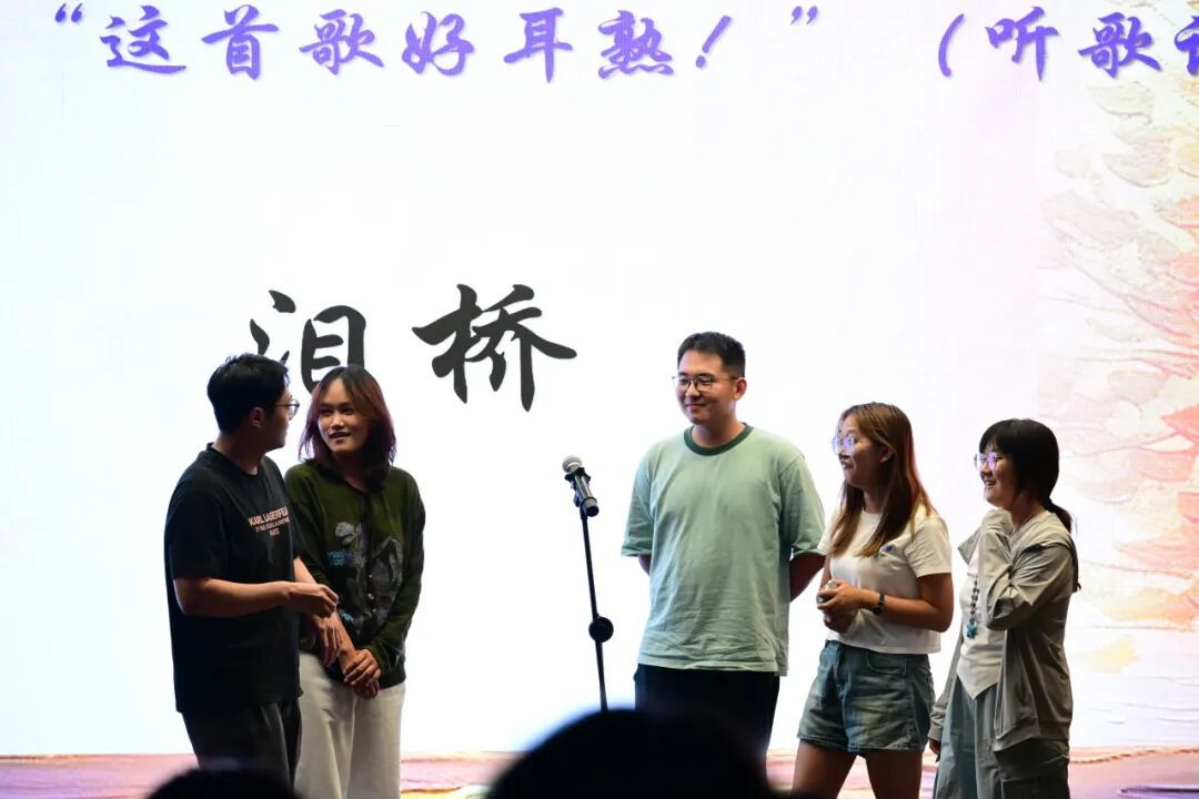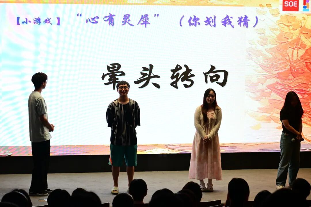 第二轮游戏 “这首歌好耳熟!听歌识曲” 一开启,现场瞬间热闹起来,数名同学踊跃报名参加游戏。听歌期间,有的同学在前奏刚飘出几个音符时就给出正确答案,引得台下观众发出惊叹。整个游戏环节既紧张又充满趣味。
