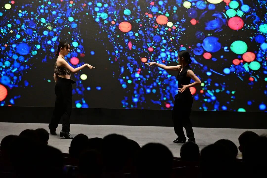 国标舞协韦姗姗、粟思怡首先为大家带来暖场拉丁舞节目《林深见境》,优美的舞姿将观众迅速带入了晚会的氛围。动感与优雅的结合让人仿佛置身于时光交错的舞池之中,现场的掌声热烈不断。