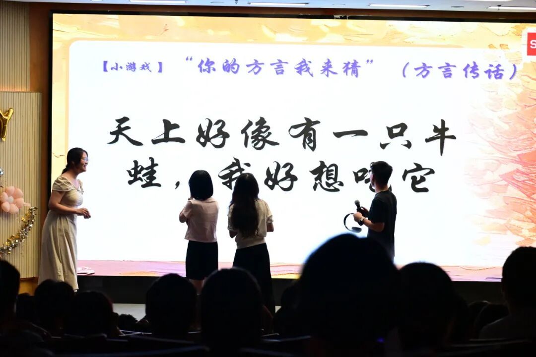 接下来进入了第一轮游戏环节 “心有灵犀:你划我猜”。上台搭档踊跃配合,比划的人神情生动、动作形象;猜题的人反应敏捷、眼神专注,顺着搭档的提示积极抢答,默契互动间满是趣味。游戏气氛轻松又热烈,搭档们偶尔的小失误引得全场笑声不断、掌声连连。