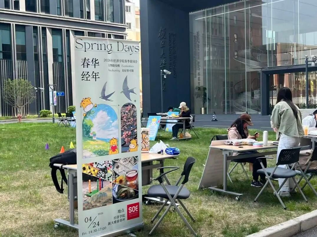 当午后的阳光洒在经院新大楼的草坪上